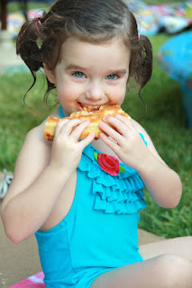 I found this swim suit at Kid to Kid consigment store for next to nothing, after taking the pics for her invite I decided to have Kari add a C to it.